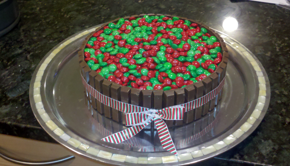 - Break the Kit Kats into bars of two and stick them all around the sides of the cake.