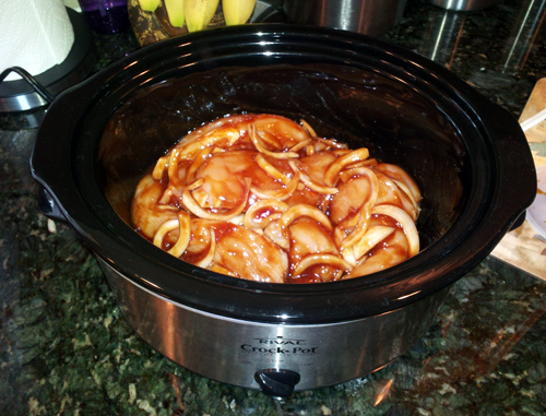 My picky toddlers gobbled this up, so this meal is a win for me! The best part is that it requires less than 5 minutes of prep before it goes into your slow cooker. I would have loved to make my barbeque sauce from scratch, but I was short on time on a weeknight. So, I cheated and used a bottled sauce. Sweet Baby Ray’s all the way!